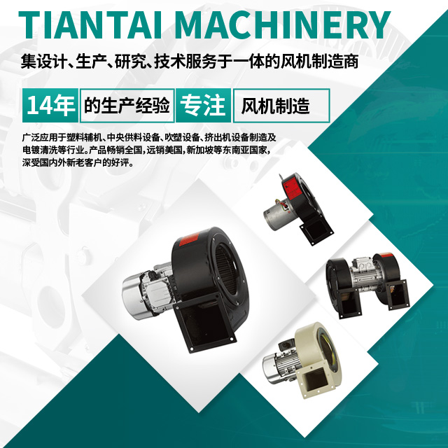 天泰機械有限公司自主開發生產的“TIANZELU”牌風機廣泛應用于塑料輔機、中央供料設備、吹塑設備、擠出機設備制造及電鍍清洗等行業。產品暢銷全國,遠銷美國,新加坡等東南亞國家,深受國內外新老客戶的好評。